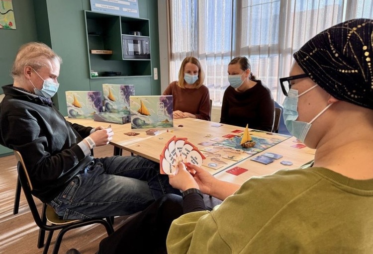 Ganami est un jeu de société coopératif pour deux à six joueurs, d’une durée moyenne d’une heure. Les participants construisent ensemble un bateau et surmontent différents obstacles en chemin. Le jeu crée un espace pour aborder des thèmes souvent difficiles à évoquer, tels que l’image de soi, la mort, les attentes, les besoins ou l’espoir. Il ne remplace pas un accompagnement professionnel, mais s’utilise en complément. Avant et après la partie, les soignants peuvent prendre le temps de s’enquérir de l’état des participants.